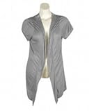 Short sleeve open front knit cardigan. Open crochet work on back continues to shoulder..../ Silver Lace Back Cardigan -- Size:14/16 Color:Silver / A Blouse